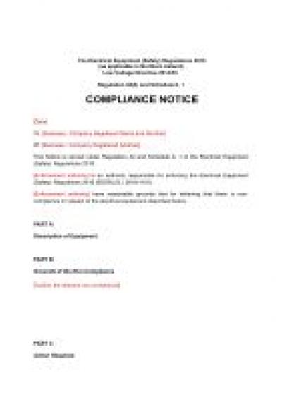 Compliance notice template under reg.42 of the Electrical Equipment (Safety) Regulations 2016 for Northern Ireland.